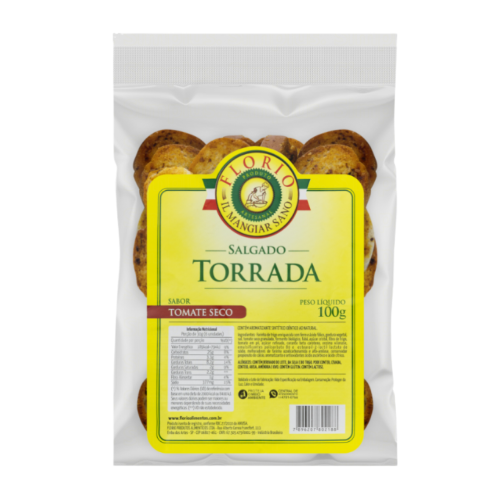 A Torrada Sabor Tomate Seco Florio é crocante e saborosa, ideal para compor tabuas de frios e aperitivos!
