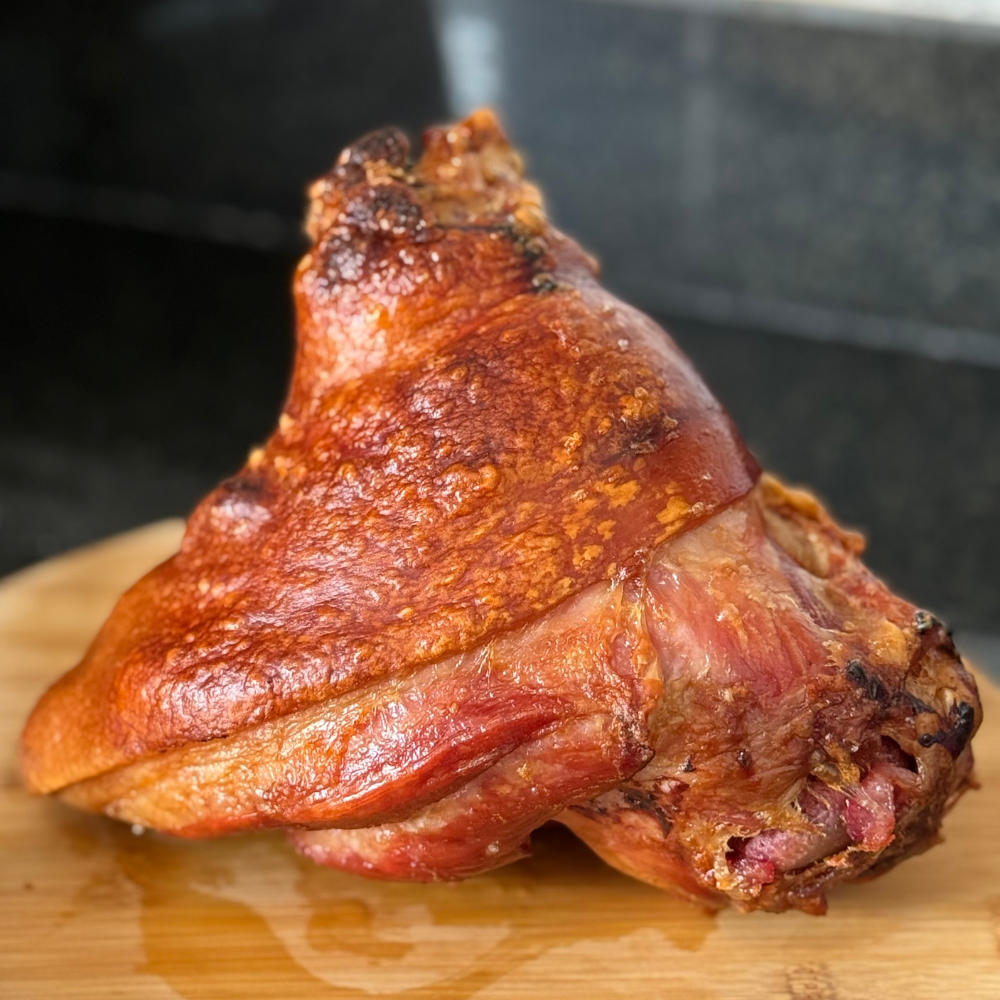 • Joelho suíno à pururuca – Finalize no forno ou na airfryer até formar uma pele crocante.